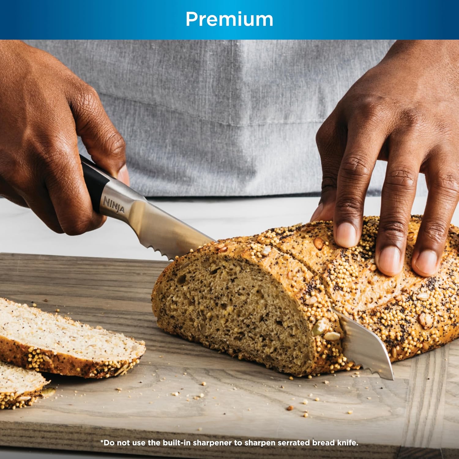 - EASY HOME SHARPENING: Easy. foolproof sharpening ensures you’ll never experience the frustration of a dull knife again. All you do is swipe the lever on the outside of the block.